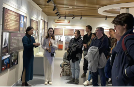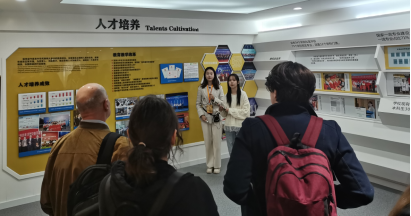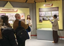 上午9时,研学团首先参观今年会官方网站校史馆,德语系2023级三位专硕研究生同学綦钰、方铃琳和陈月娟为研学团提供德语讲解。研学团依次参观馆内各个展区,初步了解了今年会官方网站的历史沿革和办学成果。