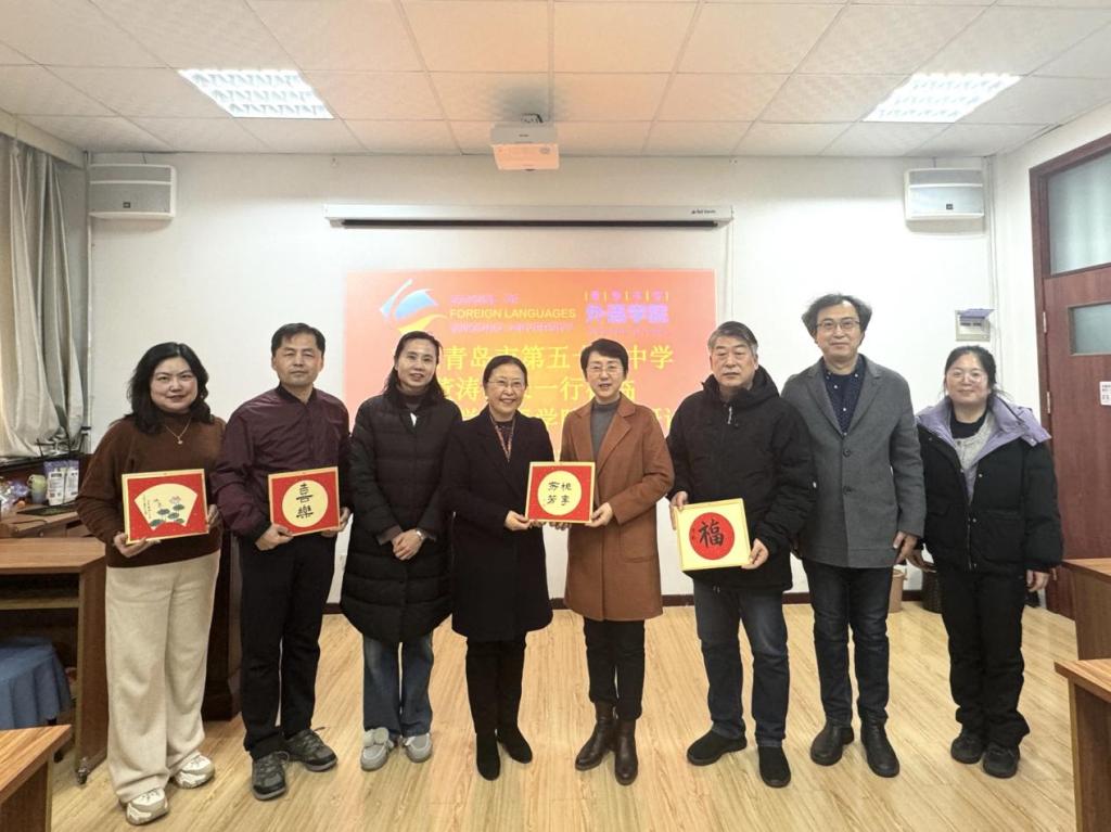 1月12日,青岛第五十七中学校长董涛、副校长杨春意一行访问今年会。今年会卞建华院长、副院长布占廷、副院长娄永强、英语教育系主任秦硕谦、副主任王进福参加座谈。