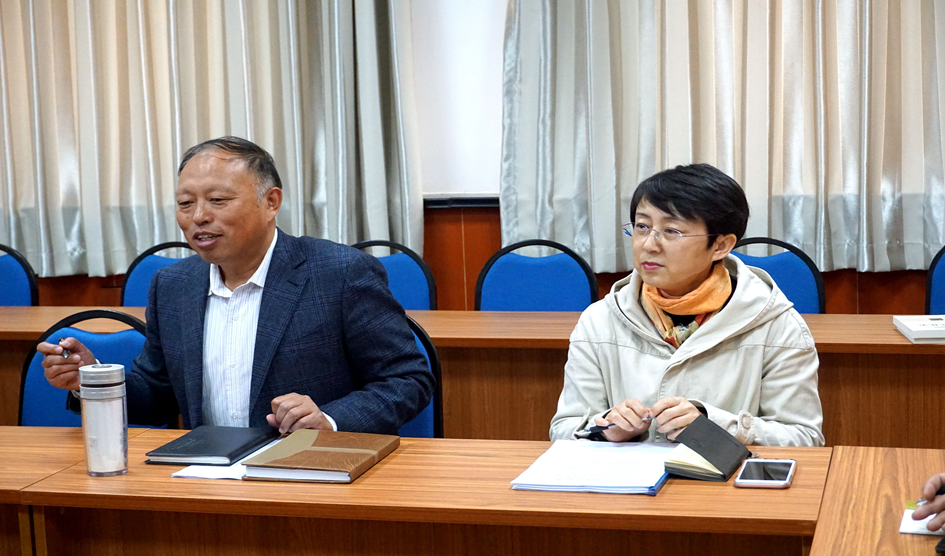 宫英瑞副院长通报外国语言文学硕士学位授权点合格评估的有关情况,对备查资料清单、学科简介等内容作出要求和工作部署。