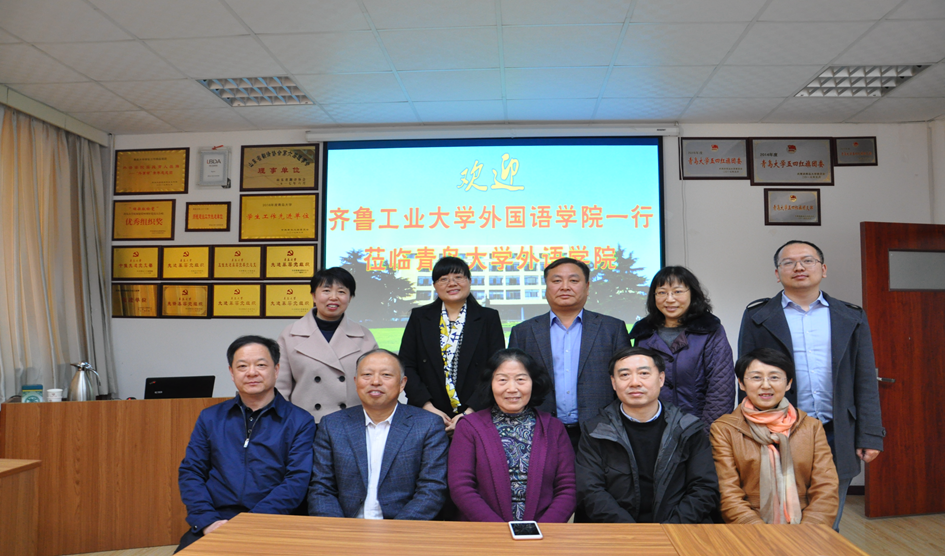 学院党政领导对齐鲁工业大学外国语学院同行来校交流表示欢迎。卞建华院长简要介绍学院事业发展基本情况以及学院近年来在本科教学、科研平台搭建、创新实践项目等方面的一些经验和做法,重点对“英语+大数据”、“翻译人才创新实验班”等情况作了介绍。牟晓燕副书记介绍了学生管理工作,尤其对“外事帮”、荣誉体系建设和学生考研等作了说明。