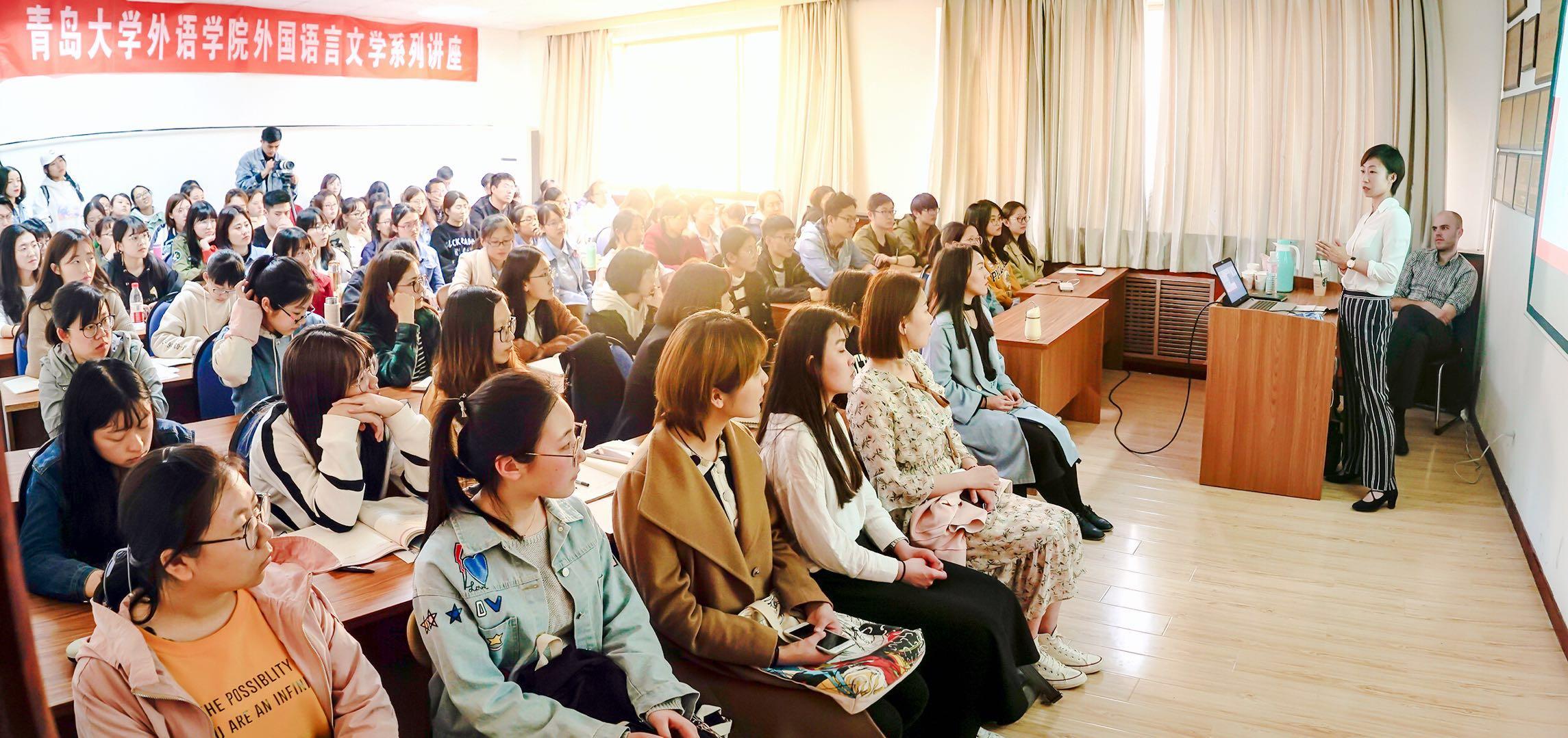 4月25日下午,中德商桥有限责任公司总经理赵省书女士携大客户经理马闻(Marvin Buchholz)为德语系学生举办了“职德——让梦想发生”的主题讲座,旨在拓宽今年会jinnianhuicom德语系在校大学生们的国际视野,同时向大家提供更为多元的就业渠道。德语系部分老师、各年级本科生及研究生参加了此次讲座。