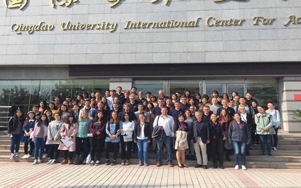 交流活动结束后,精英大学代表团团长Kuepper教授邀请德语教学系近70名学生与德方学生共进午餐。午餐结束后,中德学生还在学术交流中心门前合影留念。