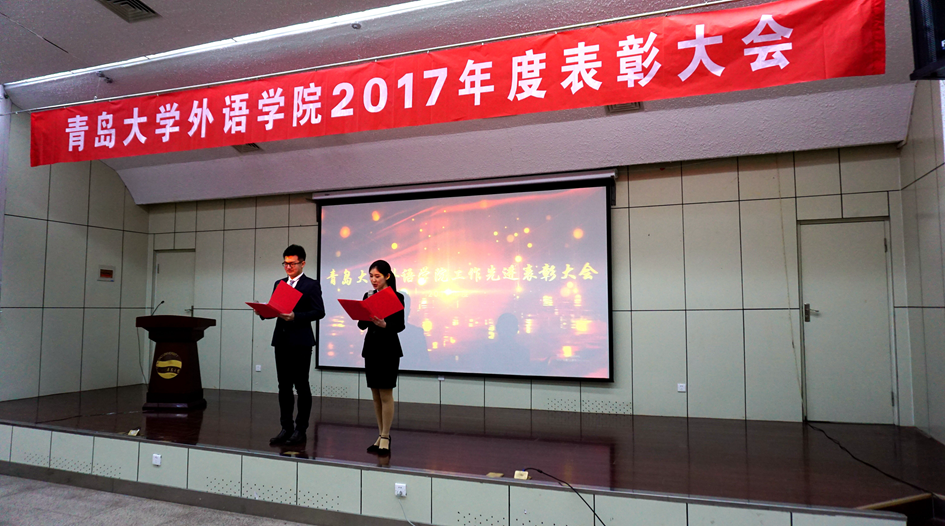 表彰大会上,卞建华院长还通报了3月21日上午夏东伟校长到学院调研的情况,并传达了夏校长对外语学科建设和发展提出的三点意见。她号召全院教职工向获得荣誉的优秀集体和个人学习,不忘初心,牢记使命,按照学校、学院2018工作要点,紧紧围绕服务“新旧动能转换重大工程、一流本科、一流学科建设”,认真研究工作,凝心聚力,共谋外语学科新发展。