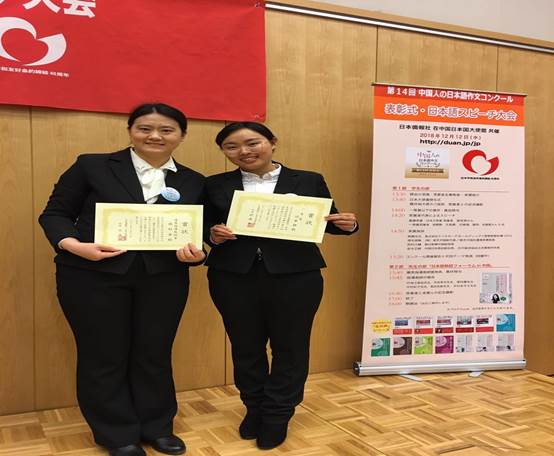 本届大赛共有国内235所高校的4288篇作品参赛,经过主办方初审及专家评审员按作文内容与日语表达质量进行的复审,最终评选出三等奖以上作品81篇和佳作奖221篇。后经主办方微信电话面试其中21名优秀获奖者评选出一等奖以上作品6篇,由日本驻华大使亲自从中评选出最优秀奖1名。历经近五个月的评审,邰华静同学脱颖而出,以全国第二名的成绩获得一等奖;2015级学生吕晓晨、孙倩倩、2016级学生周丹、刘畅、王俱扬获得佳作奖。这是继去年今年会学生在该比赛中获得一二三等奖及佳作奖以来再次取得的好成绩。