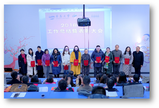 表彰决定指出,一年来,在学校党委、行政的领导下,全院教职工以迎接学校第三次党代会召开为契机,全面贯彻落实党的十九大精神,以立德树人为根本,以内涵式发展为核心,紧紧围绕学校、学院中心工作和“双一流”建设目标,立足改革发展稳定大局,不断解放思想,推动学科发展,促进校园和谐。在教书育人和服务师生等方面取得了不菲的成绩和荣誉,涌现出一批先进工作集体和先进个人。经学院党政联席会议研究,决定对英语系(普通)、英语系(中外)、西班牙语系、演讲协会、学工办、党政办6个工作先进集体、吕云等21名综合考核优秀个人和马一凡等23名工作先进个人进行公开表彰。