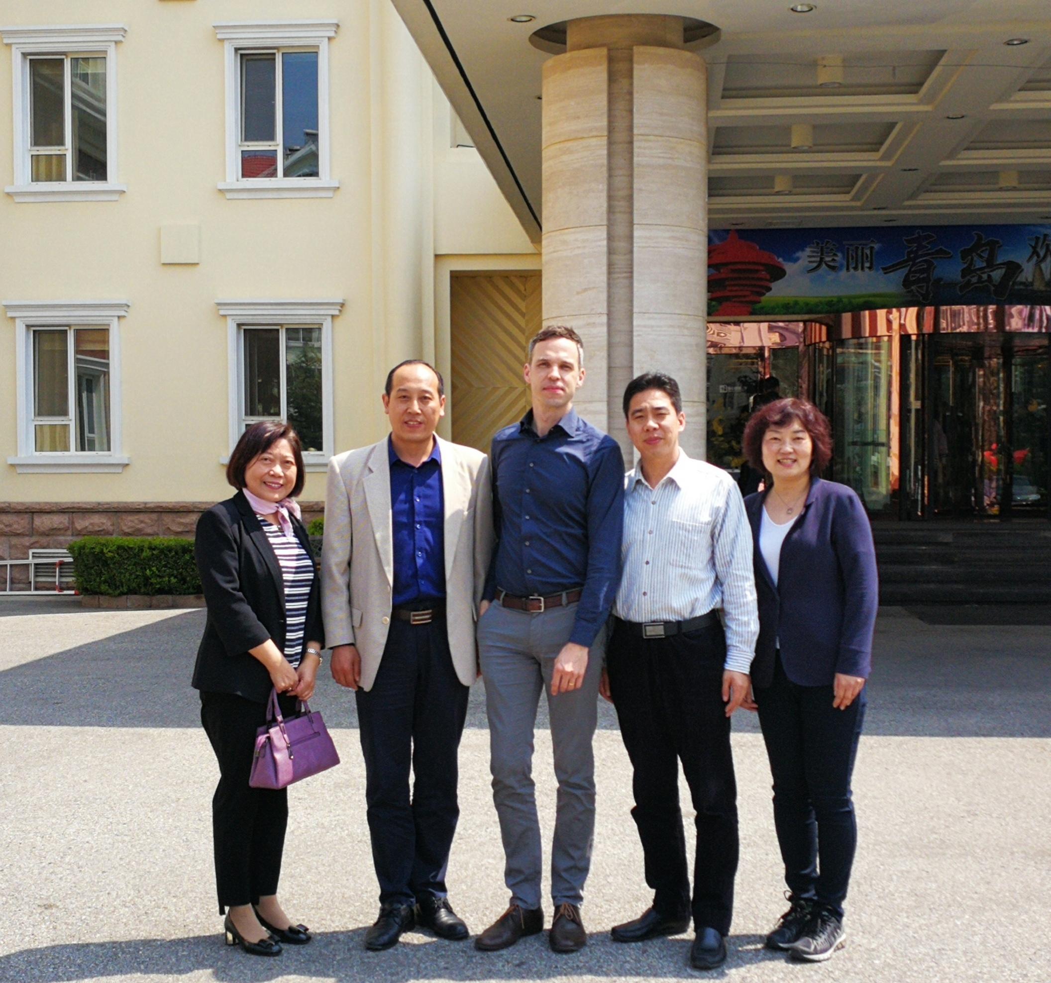 4月17日上午,德国歌德学院北京分院副院长、语言部主任杨士鹏(Jan Sprenger)先生及德语教学合作处李劲梅女士来校座谈交流。学院党委书记王传永会见了杨士鹏副院长一行,德语系主任綦甲福、副主任曹杉、德福考试负责人陈骏飞、歌德语言中心中方负责人黄怡容分别参加了会谈。