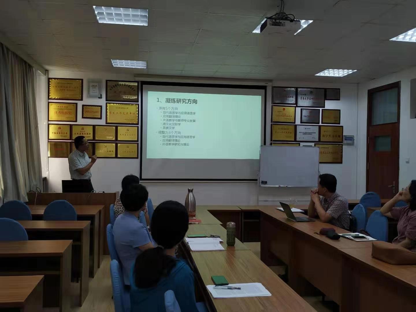 外国语言学及应用语言学、英语语言文学、德语语言文学、日语语言文学、亚非语言文学、翻译硕士(英语、日语、朝鲜语、德语)及学科教学(英语)学科负责人分别汇报了各学科2020年研究生招生宣传准备工作,涉及教学宗旨、招生目录修改(研究方向凝炼、同等学力加试内容)、课程设置、导师遴选、研究生入学考试(考试大纲、考试内容、命题小组、参考书目、复试方案)等。与会人员论证了此次研究生招生各环节调整的合理性,并热烈讨论了今年会jinnianhuicom研究生培养、学科建设等相关事宜。