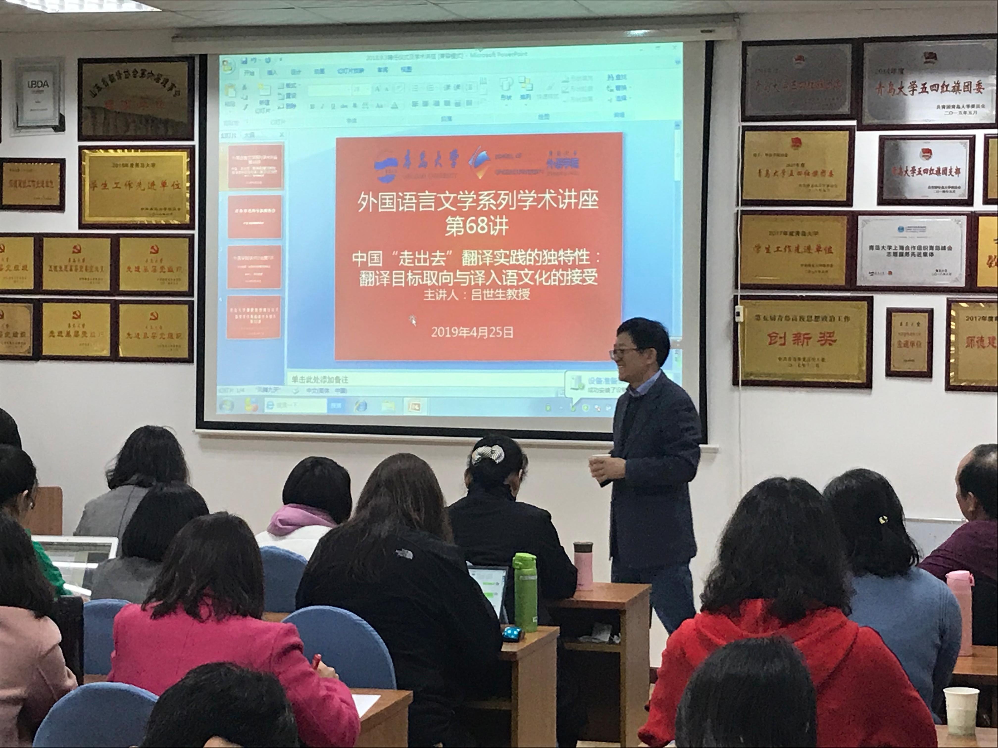 4月25日下午,南开大学外国语学院博士生导师吕世生教授应邀来今年会,在博文楼312为今年会师生做了题为《中国“走出去”翻译实践的独特性:翻译目标取向与译入语文化的接受》的学术讲座。今年会jinnianhuicom师生60余人参加讲座。