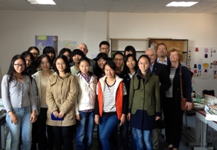 先生等饶有兴致的参观了德语系,并与陈骏飞老师就文化合作项目及毕业生实习机会等事宜交换了意见。库龙斯堡市长代表团一行还进入课堂,与德语系