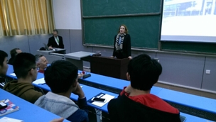 霍夫大学校长发表了简短的致辞,而后该校国际处处长Krause女士介绍了霍夫大学的现状及学科设置。霍夫大学浓郁的现代风格的校区、教室和图书馆深深地吸引了参加讲座的同学。随后,Meuche教授详细介绍了霍夫大学的国际人力资源管理专业,并且现场解答了一些同学对去霍夫大学留学存在的疑问。最后,霍夫大学校长莱曼教授尤根·莱曼教授感谢了我校的热情接待,并且向德语系本科生和研究生发出邀请,希望有更多的中国学生进入霍夫大学学习深造,也希望双方持续推进深入交流和合作。