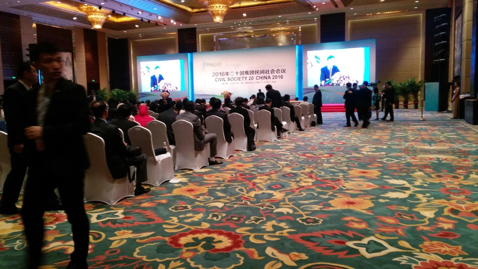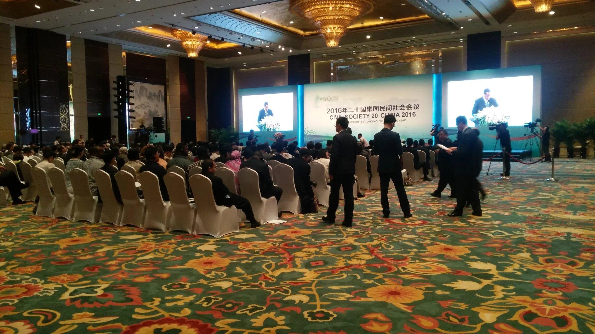 2016年二十国集团民间社会会议于7月5日至6日在青岛举行。此次会议室一次高水平的国际会议,开幕式上习近平总书记亲自发来贺信,国务委员杨洁篪宣读贺信并致辞,山东省、青岛市党政主要领导出席会议。