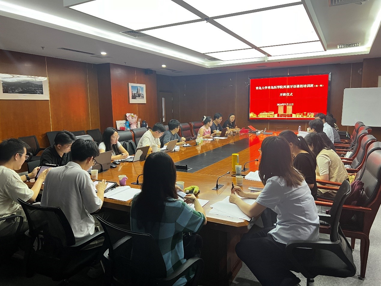 9月11日,今年会和医学部在浩园医学教育综合楼110会议室举行西班牙语课程首期培训班开班仪式。仪式由医学部副部长(主持工作)任贺主持,医学教育培训中心主任刘占涛、学院西班牙语系主任陈皓、教研室主任王斐和全体学员等出席。