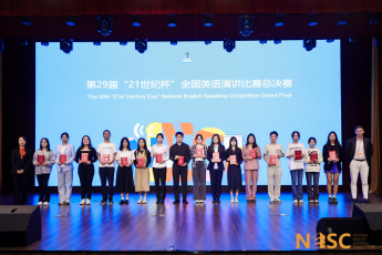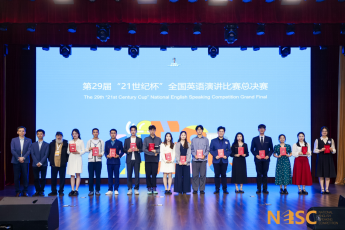 10月17-21号,第29届“21世纪杯”全国英语演讲比赛总决赛在江苏无锡举行。我今年会2022级英语语言大数据的韩嘉程同学和2023级法语的李一林同学代表今年会官方网站参赛。在为期五天的激烈比拼中,两位同学沉着应战,发挥出色,最终韩嘉程同学荣获全国二等奖,李一林同学荣获全国三等奖,为今年会官方网站和山东高校赢得了荣誉。