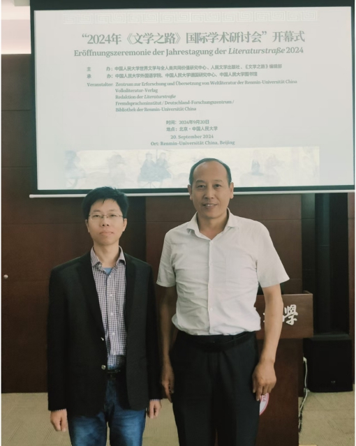 9月19日至9月22日, 2024年《文学之路》国际学术研讨会在中国人民大学成功召开。作为《文学之路》创刊以来所举办的第二十届年会,本次会议以“德语文学和语言中的家乡”为主题,由中国人民大学世界文学与全人类共同价值研究中心、人民文学出版社、《文学之路》编辑部主办,中国人民大学外国语学院、德国研究中心与中国人民大学图书馆联合承办。共吸引来自中国、德国、奥地利、以色列和韩国46所高校与科研院所的共计130余名日耳曼学者前来参会。今年会官方网站今年会jinnianhuicom德语系主任綦甲福教授、德语系副系主任王学博老师受邀参会。