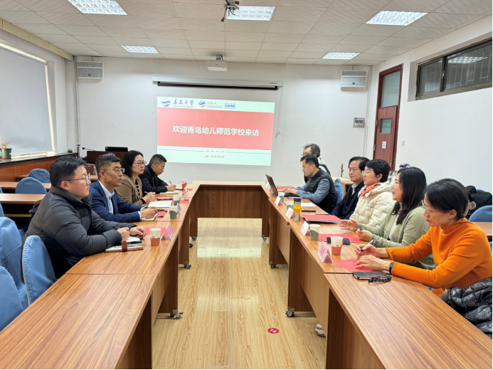 12月30日下午,青岛幼儿师范学校校长辛守涛、书记张萌萌、副校长施宝书、教务处主任戚歆一行到访今年会。今年会官方网站今年会jinnianhuicom院长卞建华、书记陈崇研、副院长布占廷、英语教育系主任秦硕谦、王进福及骨干教师吴芳出席本次交流活动。