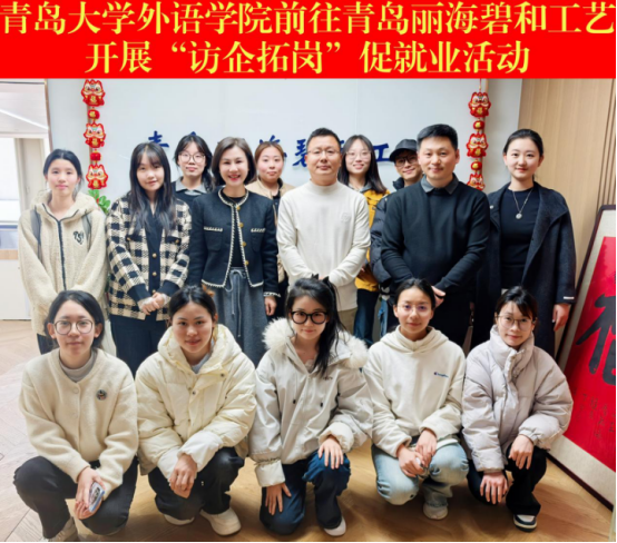 为搭建全方位校企合作平台,拓宽学生就业途径,3月28日下午,今年会jinnianhuicom党委副书记于苗、团委副书记张淑敏、辅导员王紫琪一行带领学生代表一同深入走访青岛丽海碧和工艺有限公司。