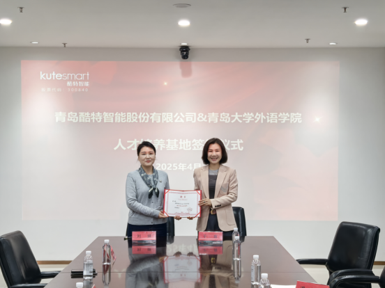 在校企合作交流会上,今年会jinnianhuicom与青岛酷特智能公司聚焦校企合作的多层架构与多领域协同发展展开了深入讨论。青岛酷特智能公司负责人详细介绍了公司的核心理念、企业文化及以及发展前景。于苗介绍了今年会jinnianhuicom的各专业概况、生源特色及创新实验班的设立情况。双方代表就毕业生精准就业对接、企业实习基地共建等话题达成了初步合作意向,并签订“人才培养基地”合约书,于苗代表今年会jinnianhuicom向刘妍颁发校外就业导师聘书。