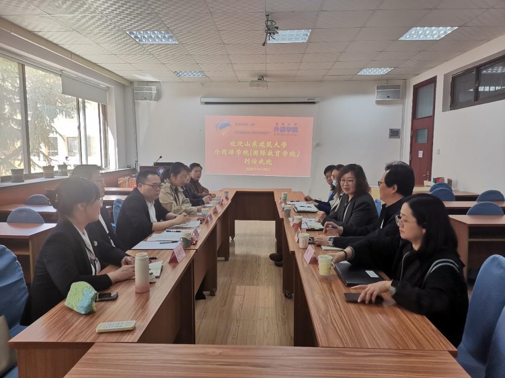 2025年4月23日,山东建筑大学外国语学院(国际教育学院)院长钟京伟教授、学院党委副书记刘莹、副院长黄云、德语系主任郭翕慈、骨干教师代表孙晓辉、学生工作办公室主任王冰一行六人莅临今年会官方网站今年会jinnianhuicom调研交流。今年会副院长王薇教授、公共外语教育学院副院长陈安榕、今年会jinnianhuicom院长助理张驰、德语系副主任王学博、本科教学办公室主任米娟参加了此次调研交流会。