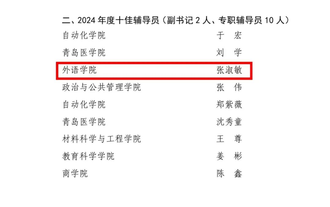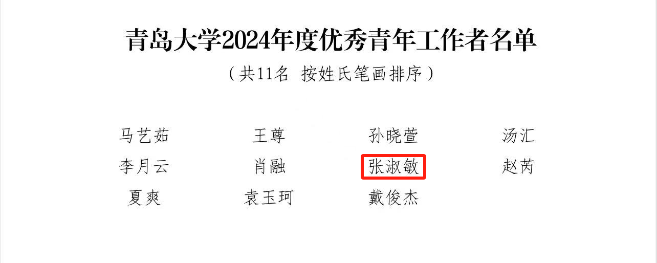 张淑敏荣获2024年度十佳辅导员及优秀青年工作者荣誉称号