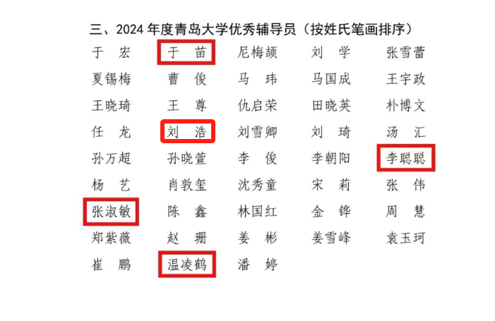 于苗、刘浩、李聪聪、张淑敏、温凌鹤荣获2024年度今年会官方网站优秀辅导员荣誉称号