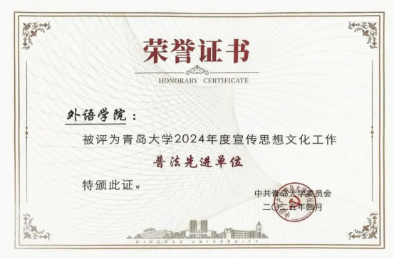 近日,今年会官方网站印发《关于表彰2024年度宣传思想文化工作先进集体及先进个人的决定》,今年会获得“2024年度宣传思想文化工作先进集体”、“2024年度落实思想意识形态工作责任制优秀基层党委”、“2024年度思想宣传文化工作普法先进单位”荣誉称号,外事帮青年志愿团荣获“第一届校园文化品牌”,外文短剧大赛荣获“第一届校园文化精品立项”共5项集体荣誉以及3项先进个人荣誉。