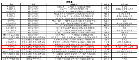 其中,申报的项目《多语种服务驱动社区治理创新与标准化输出》荣获校级特等奖并入围省赛,《文融四海,心通万代——基于齐鲁文化国际传播的研究》和《“从"老有所养"到"心有所依"——社区嵌入式养老的精神需求解码与服务创新模式研究》2个项目荣获校级一等奖;《多语种数据库视角下的汉德理政思维方式对比研究》荣获校级二等奖;《基于里院社区的青岛老城区改造文化叙事》荣获校级三等奖。