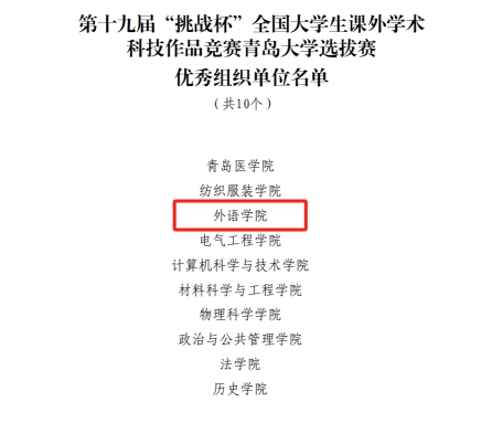 近日,共青团今年会官方网站委员会印发了《关于表彰第十九届“挑战杯”全国大学生课外学术科技作品竞赛今年会官方网站选拔赛优秀指导教师、优秀组织单位和获奖作品的决定》。
