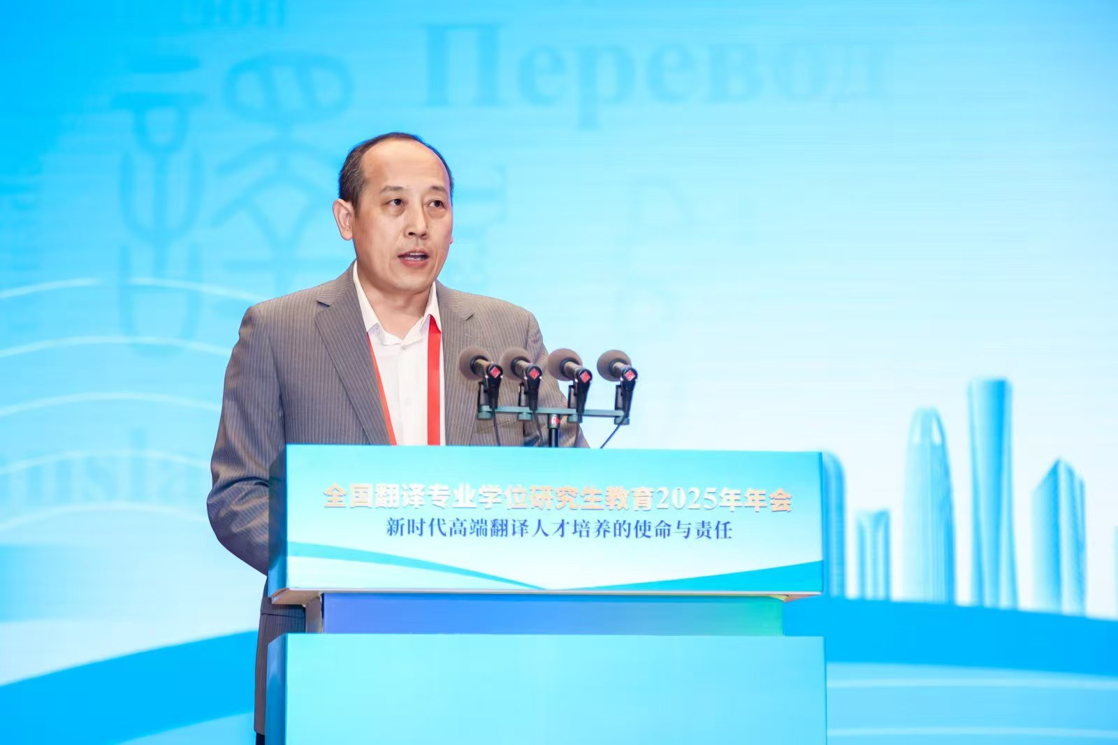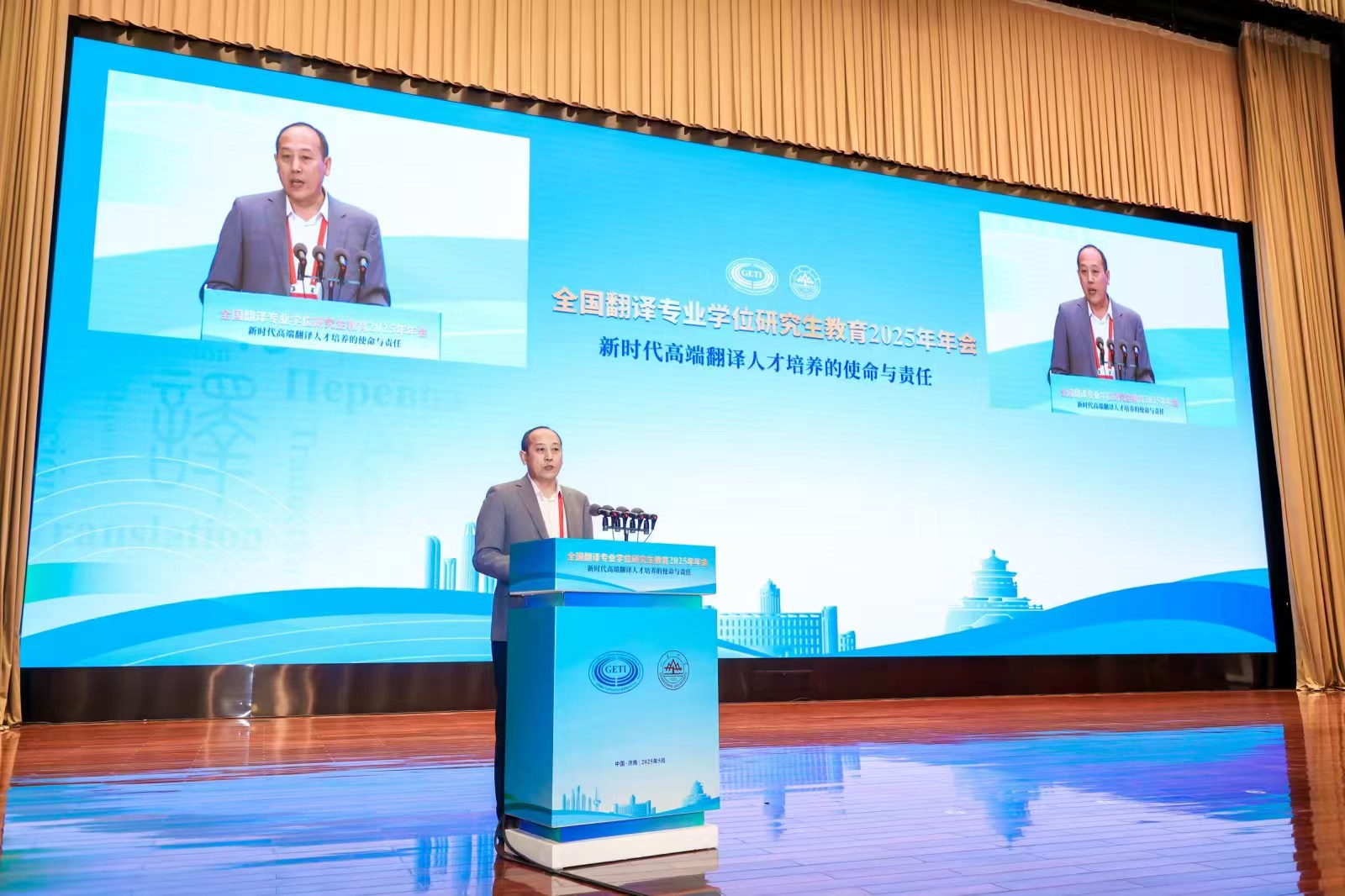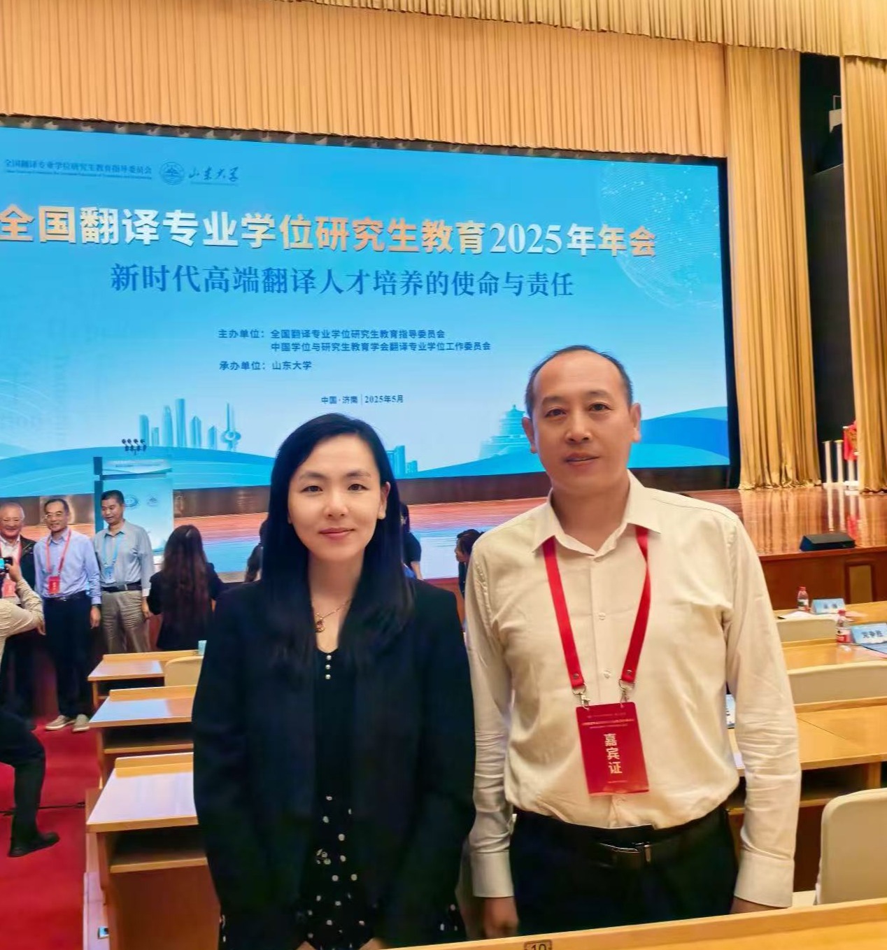 2025年5月17日-18日,全国翻译专业学位研究生教育2025年年会在济南召开。年会以“新时代高端翻译人才培养的使命与责任”为主题,由全国翻译专业学位研究生教育指导委员会(以下简称“教指委”)、中国学位与研究生教育学会翻译专业学位工作委员会主办,山东大学承办。教指委委员、专家委员和全国翻译专业院校代表 600 余人参会。今年会德语系主任、全国翻译专业学位研究生教指委专委会委员綦甲福教授和副院长曹杉参会。