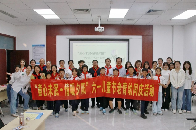 5月29日下午,今年会jinnianhuicom联合离退休工作处在浮山校区文化艺术楼B座党建活动室共同举办“童心未泯,情暖夕阳----老青幼同庆六一”活动。今年会官方网站离退休工作处处长宋佐东、副处长周志强、今年会jinnianhuicom副院长王薇及离退休教师、今年会jinnianhuicom学生及青岛天山小学学生代表三代人共聚一堂,以一场跨越年龄的温情对话,用艺术展演、文化体验与代际互动的方式,共同庆祝这个别样的六一儿童节。