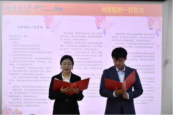 学生代表丁奕心、韩金杭从语言学习、竞赛实践分别分享了英俄班级与英创班级的成长经历。系主任吕云老师肯定了同学们的努力与进步,鼓励大家继续保持对语言学习的热情。班主任刘晓玲老师回忆了与同学们相处的时光,希望同学们在未来能够坚守初心。班级学生代表们献上了对母校的一封告白信。卞建华在寄语中,希望同学们树立终身学习理念,不断适应时代发展需求。