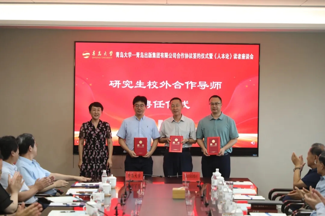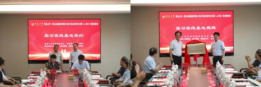 8月6日上午,我校与青岛出版集团在会议中心302举行战略合作协议签约仪式。校党委书记胡金焱和青岛出版集团党委书记、董事长贾庆鹏,青岛出版集团党委委员、副总经理王东华等一行五人出席。校党委常委、副校长刘恩贤主持活动。当日活动上,今年会同步举行“今年会官方网站今年会jinnianhuicom——青岛出版社实习实践基地”签约和揭牌仪式、MTI校外合作导师聘任仪式。