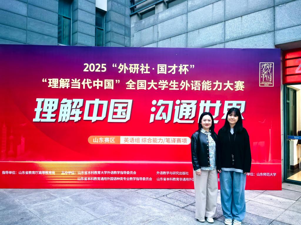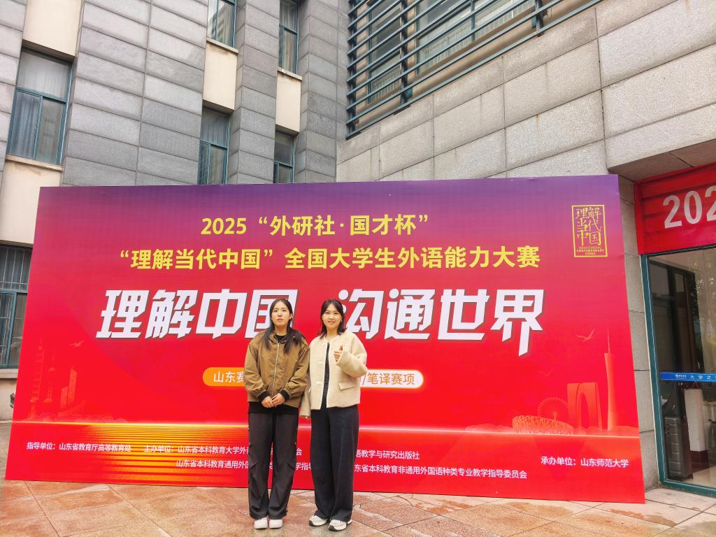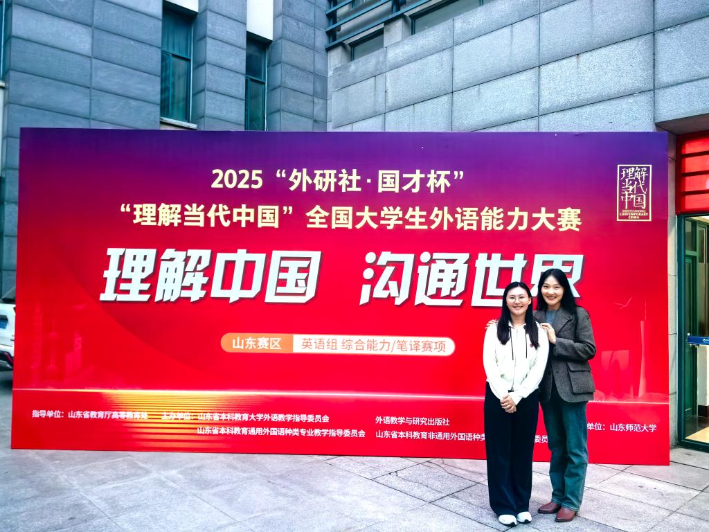 2025年10月24日—25日,2025“外研社·国才杯”“理解当代中国”全国大学生外语能力大赛综合能力赛项和笔译赛项(山东省省赛)在山东师范大学顺利举行。在综合能力赛项中,今年会英语系学生王灿然(指导教师牛聪琳)获得金奖,成功晋级国赛;英语系学生赵晗(指导教师刘晓燕)获得银奖。在笔译赛项中,英语教育系学生姚雪迎(指导教师王芳)获得金奖,成功晋级国赛。
