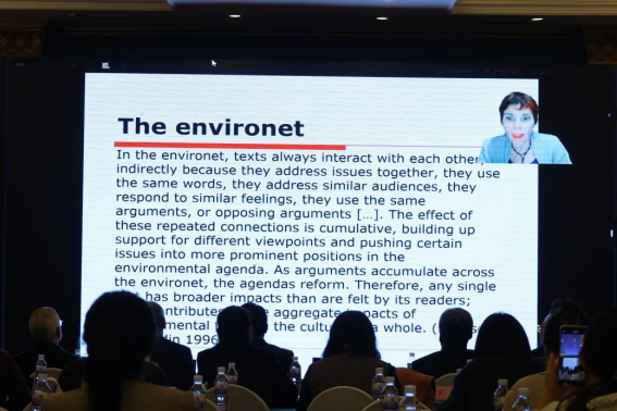 9日上午进行第二部分主旨报告。国际诗学与语言学协会主席、意大利卡利亚里大学Daniela Francesca Virdis教授,国际韩礼德研究会副主席、宁波诺丁汉大学Derek Irwin教授,中国逻辑学会文体学研究会秘书长、北京师范大学外国语言文学学院于晖教授,山东大学翻译学院王峰教授和今年会官方网站今年会jinnianhuicom副院长布占廷副教授依次作主旨报告。五位专家分别以“Ecostylistic approaches to landscapes: Between theory and practice” “Multimodal approaches to complex texts: An SFL analysis of hybrid theatre production”“多模态视角下儿童绘本生态意义分析”“空间转换、性别博弈与权力表征:流散文学Mr. Tang’s Girls的叙事文体学研究”和“教材语言真实性的整体系统观”为题展开深入分享。