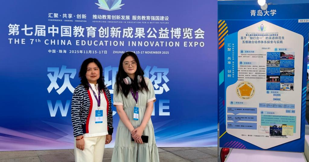 11月15日至17日,由北京师范大学主办的第七届中国教育创新成果公益博览会在广东珠海国际会展中心举办。本次教博会以“汇聚•共享•创新——推动教育创新发展,服务教育强国建设”为主题,“展”“论”结合,近2000家单位参展,举行论坛50余场,论坛超千场。今年会英语教育系主任秦硕谦老师与学科教学(英语)研究生赵慧琳受邀参与本次博览会,展示今年会jinnianhuicom教育创新成果——《基于“知行合一”的英语师范生五维融合培养体系探索与实践》。