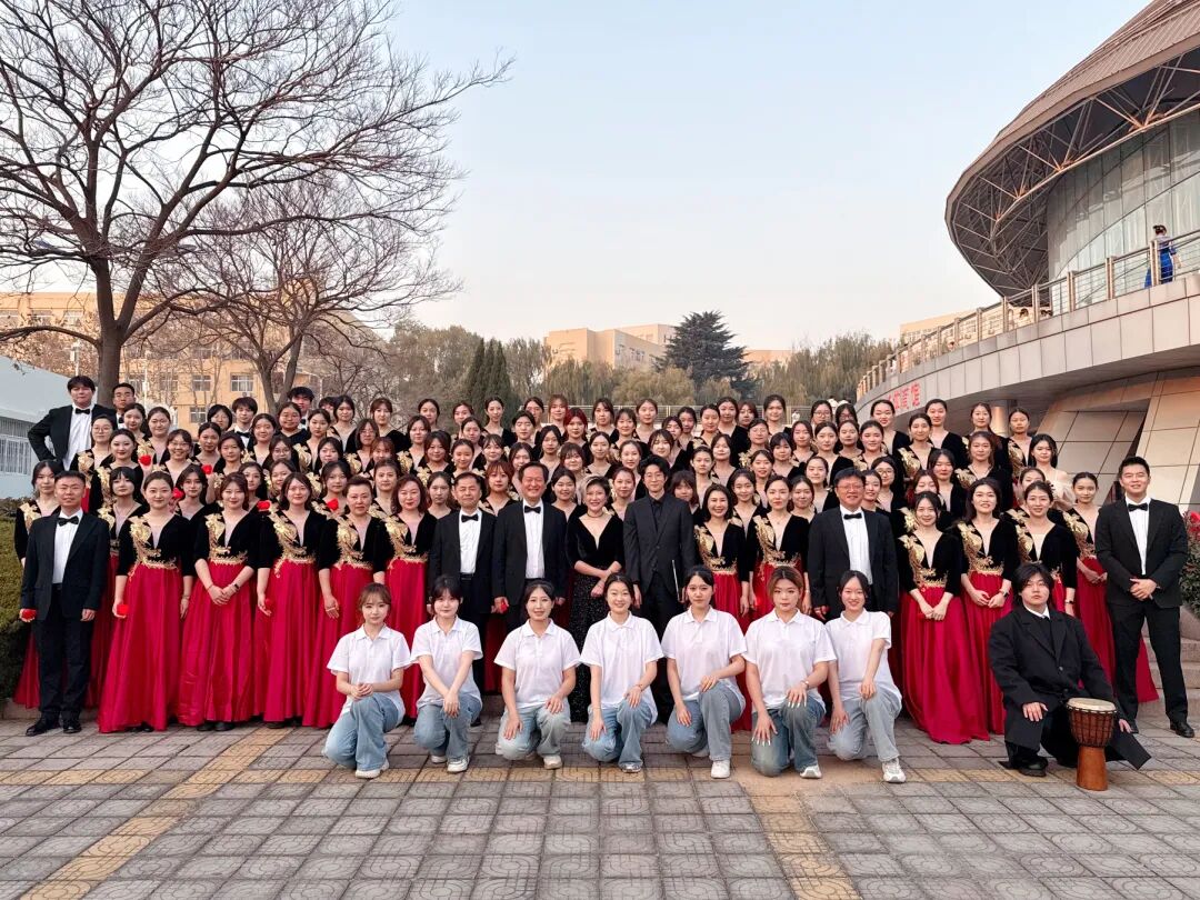 台下一次次排练,是精益求精的沉淀。作为全校独具特色的师生合唱团,外院代表队自筹备以来,投入了长达数周的集中训练。在指导老师与钢琴伴奏的悉心带领下,队员们从发声技巧到情感表达,从节奏把握到舞台表现,反复打磨每一个细节。三首歌曲的巧妙串联,不仅考验着合唱编排的创意,更凝聚着全体成员对音乐与舞台的真诚热爱。