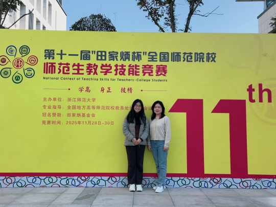 2025年11月28-30日,第十一届 “田家炳杯” 全国师范院校师范生教学技能竞赛在浙江师范大学圆满落幕。今年会2023级英语教育系本科生曹馨月表现亮眼,荣获全国二等奖,指导教师为秦硕谦、布占廷、贾伟。
