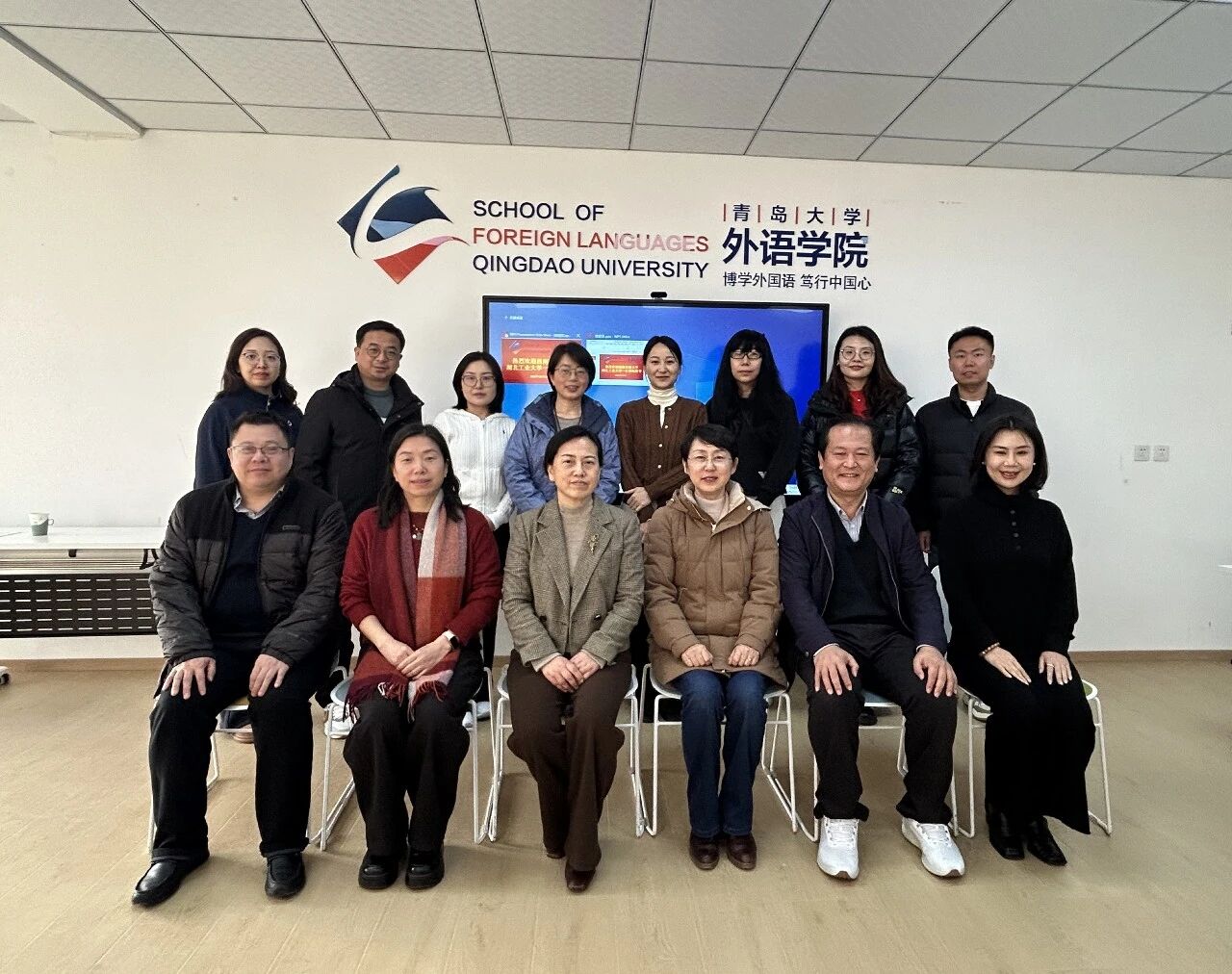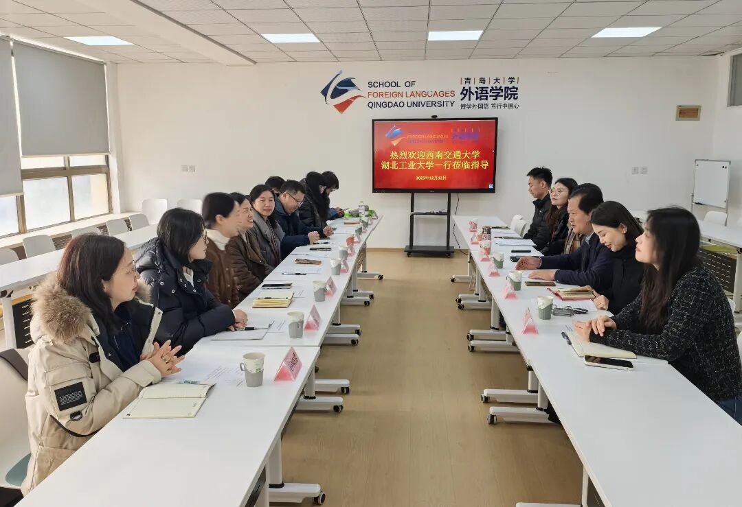 陈崇研对两所大学同仁的到访表示诚挚欢迎,期待三校以此次交流为起点,搭建常态化沟通平台,实现优势互补、共同提升。卞建华从学院发展脉络、学科建设、教师队伍建设、人才培养、科学研究与社会服务等方面详细介绍了学院的发展现状。她表示,学院紧扣“博学外国语,笃行中国心”的院训,推进落实“一二三四五”育人体系和“四个融合”一流本科人才培养工作体系,聚焦人才培养高质量发展,实现学生的全面发展,立足青岛,面向全国,培养具有家国情怀和国际视野的创新型、高素质外语人才。随后,刘浩从学工队伍、班主任队伍、学生党支部及十大育人体系的品牌化四个方面,对学院学生管理工作及党建工作进行了介绍。