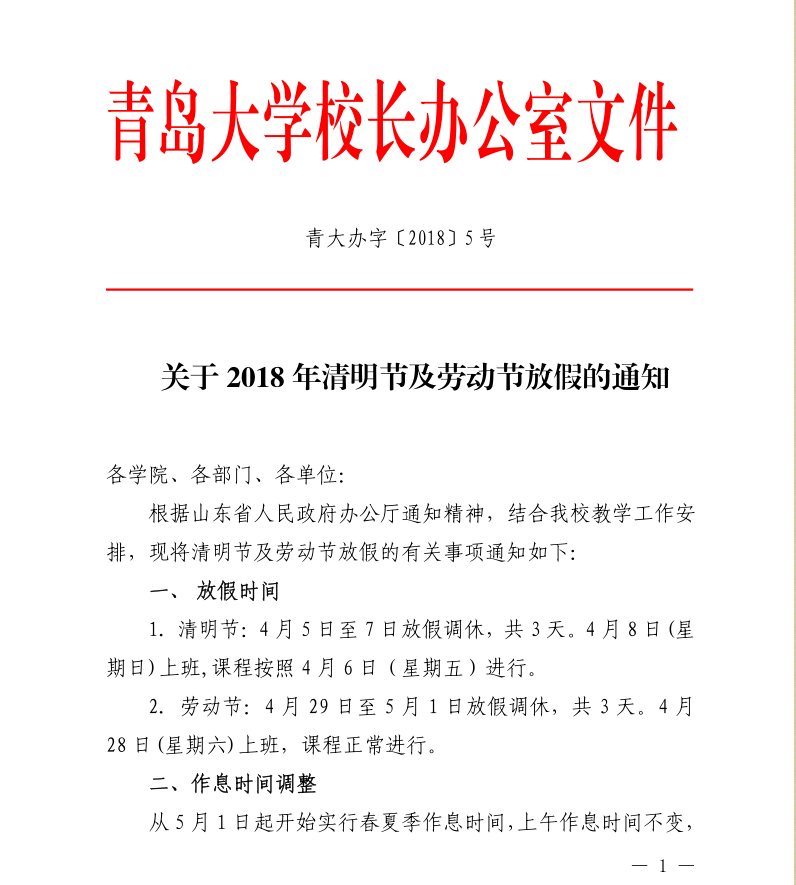 2018年清明节及劳动节放假通知